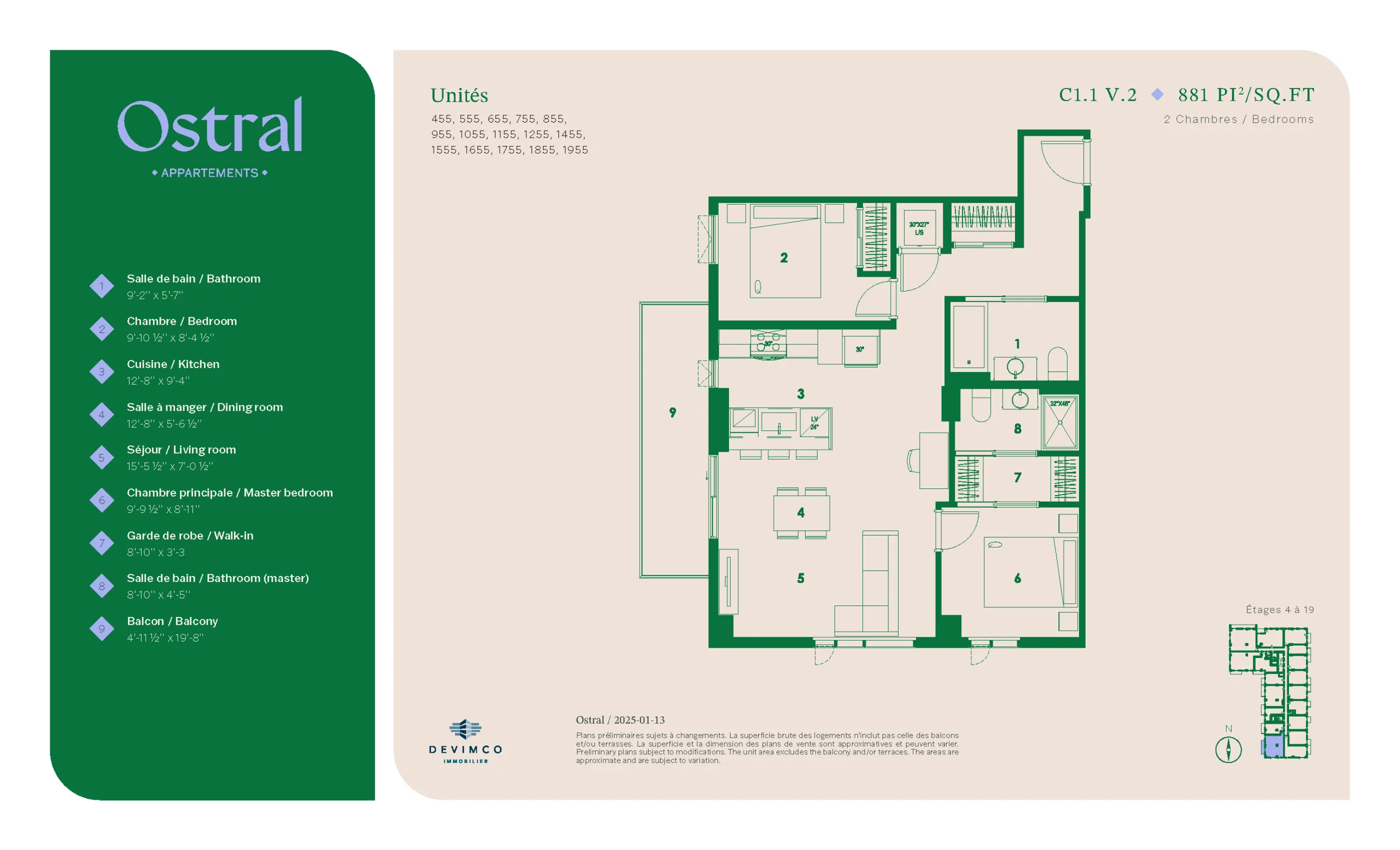 2 Chambres • 2 Salles de bain